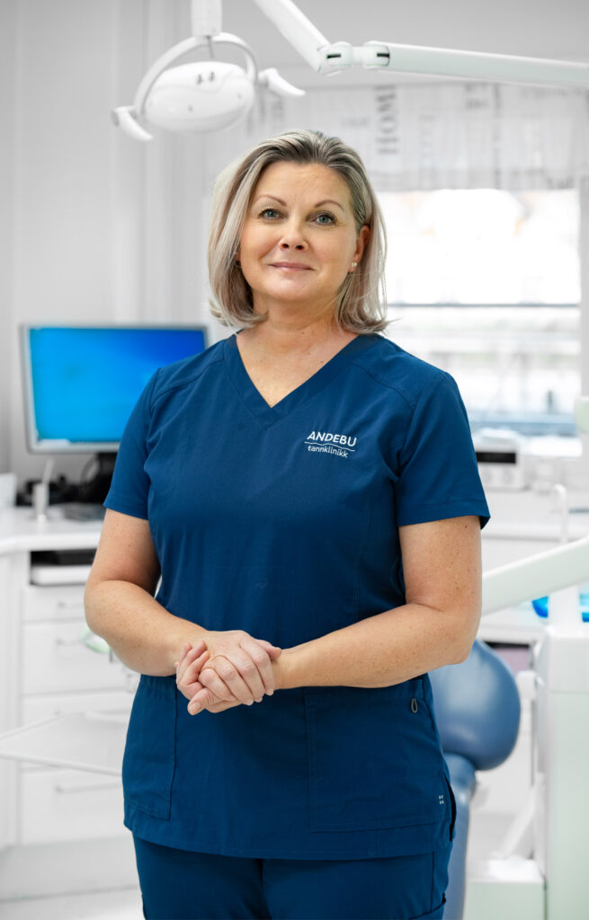 Jeanette er en blid og omsorgsfull del av teamet vårt. Hun jobber tett med Geir, og sørger for at reguleringspasientene føler seg trygge og godt fulgt opp – hver eneste gang.